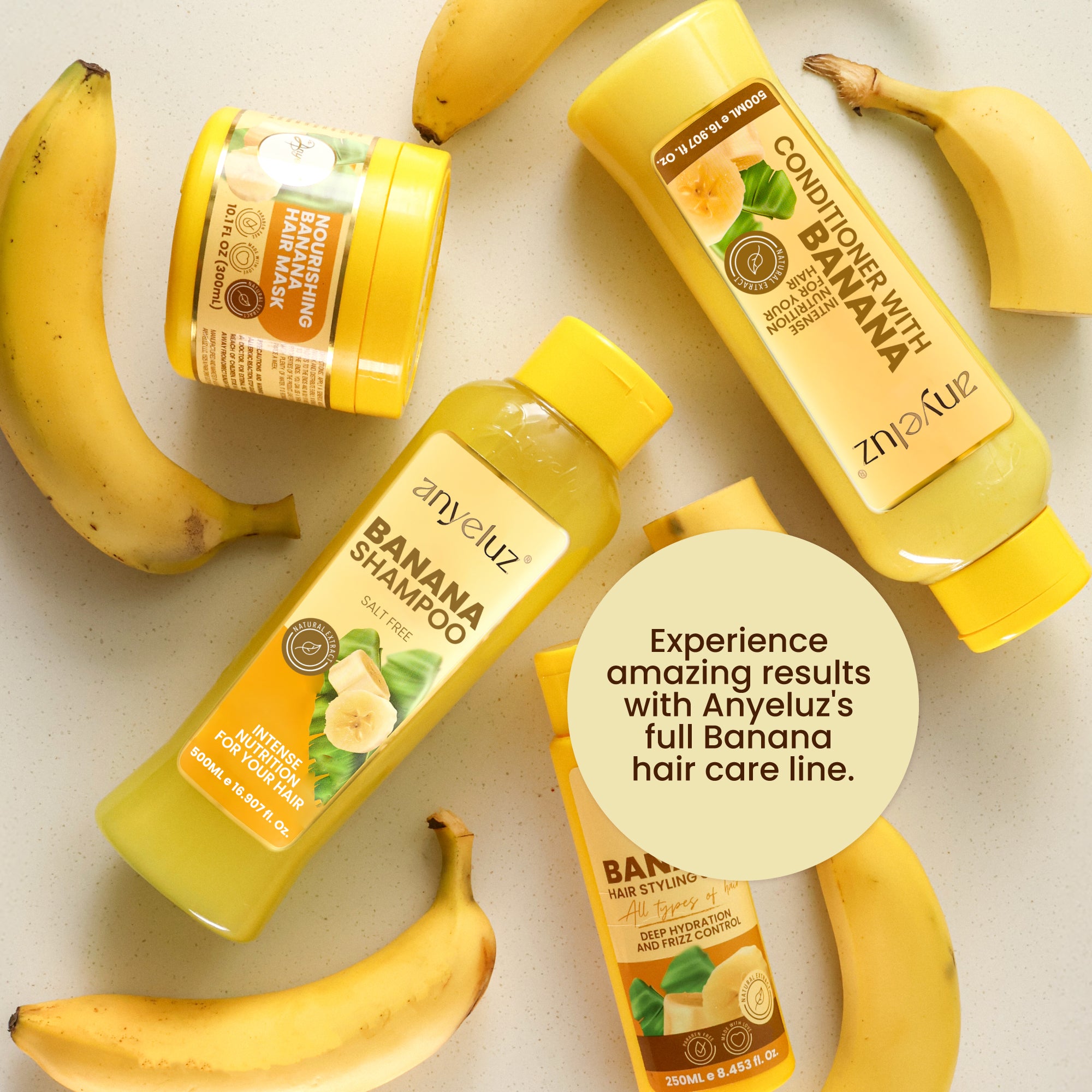 Revitalize your hair with ANYELUZ Banana Hair Treatment, a deeply nourishing mask designed to repair and hydrate even the most damaged hair. Infused with banana extract, rich in vitamins and natural oils, this intensive formula restores strength, shine, and manageability.