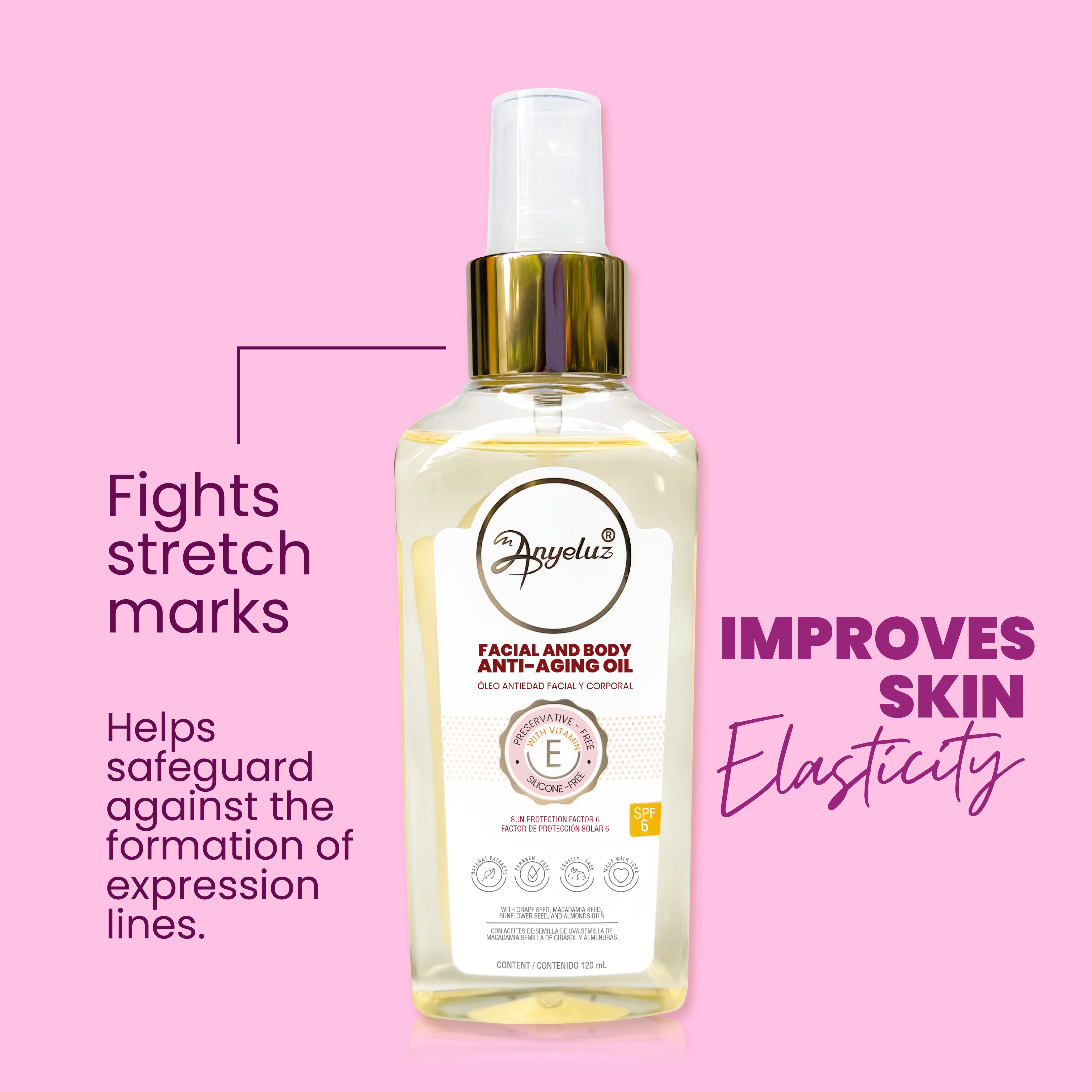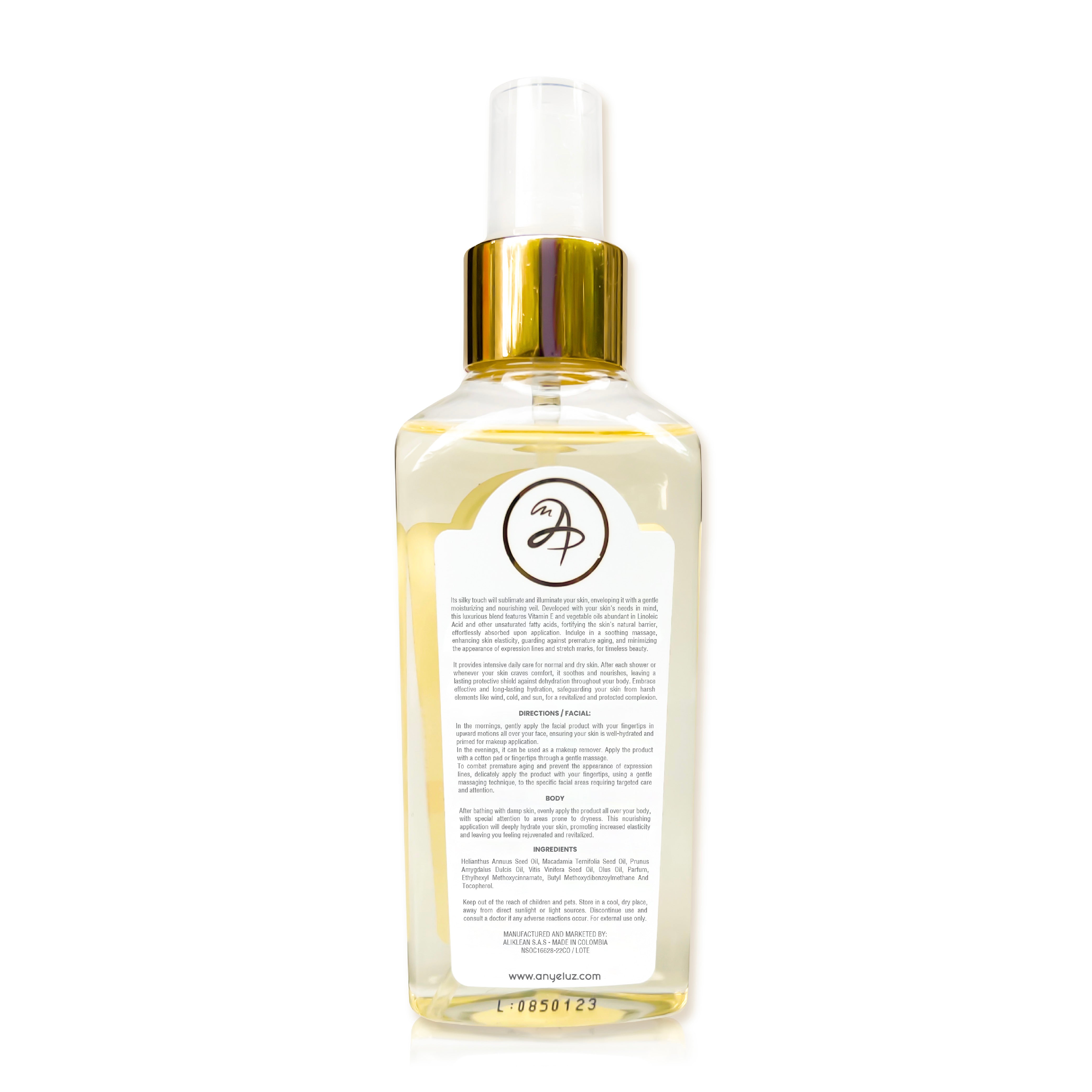Discover the wonderful Anyeluz Anti-Aging Oil! Our Anti-Aging Oil is an exceptional product that combines vitamin E and oils rich in linoleic acid and other unsaturated fatty acids.
