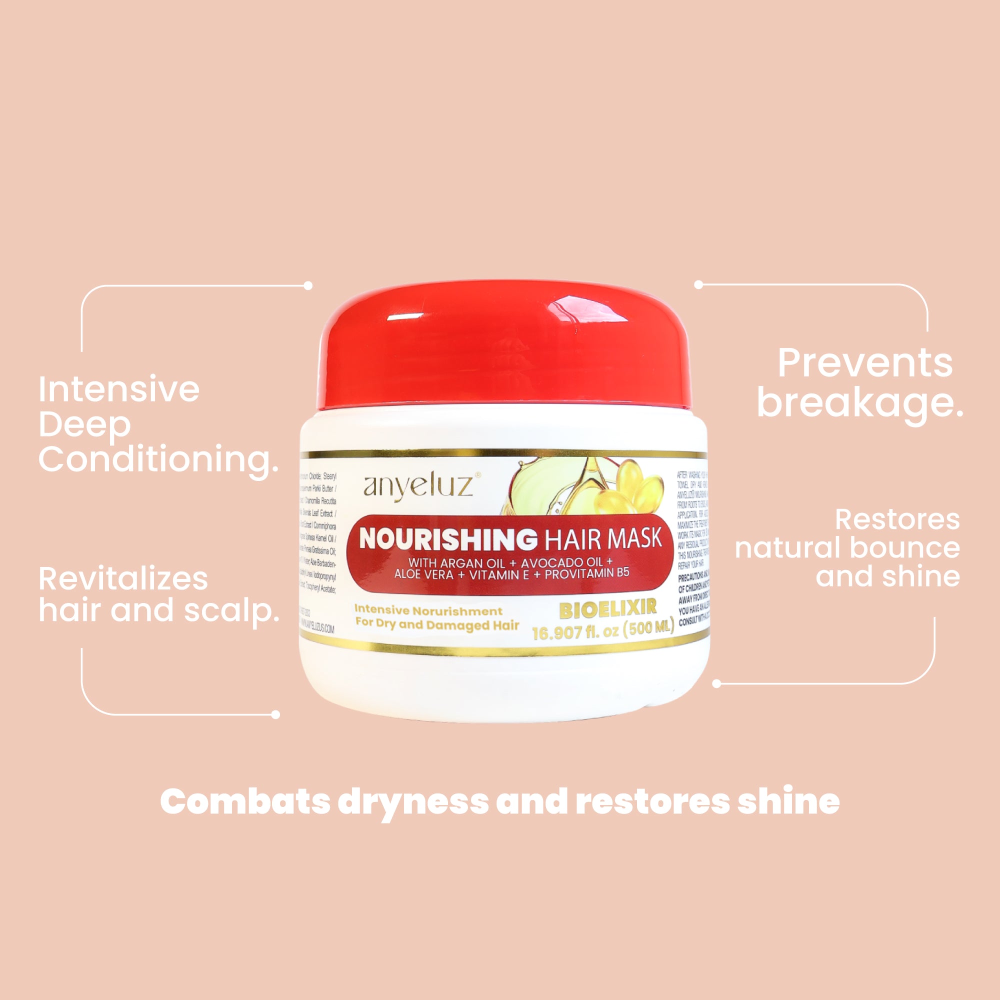 - Combination hair: Before washing the hair (it doesn't matter if the hair is dirty), apply from the roots to the ends and leave it on for 20 to 30 minutes and then rinse with any Anyeluz´s Shampoo.
